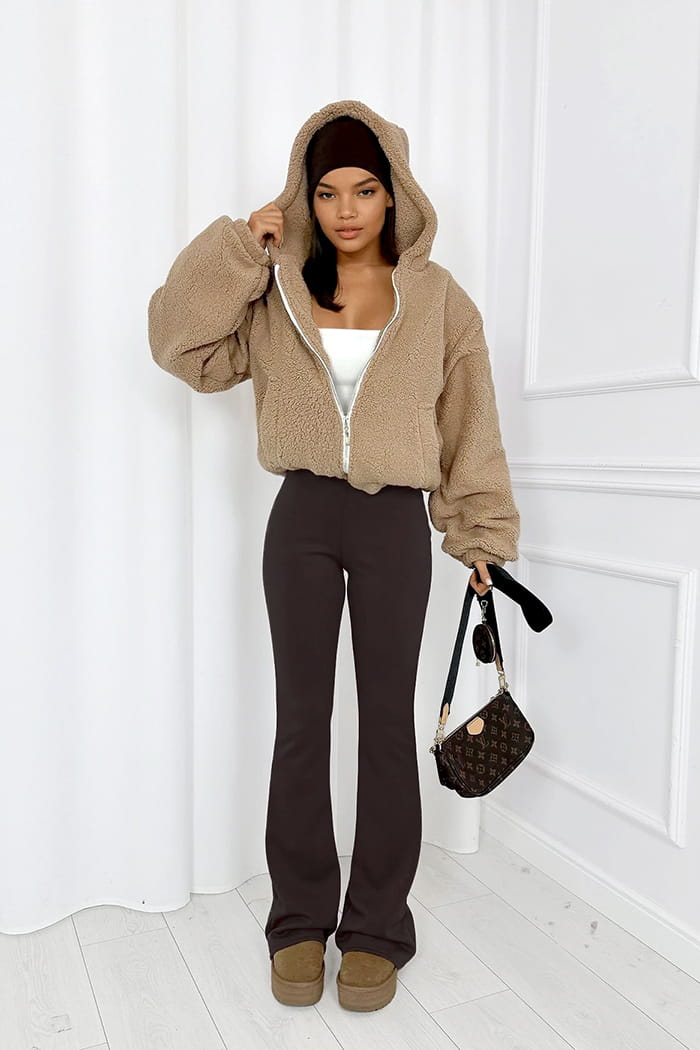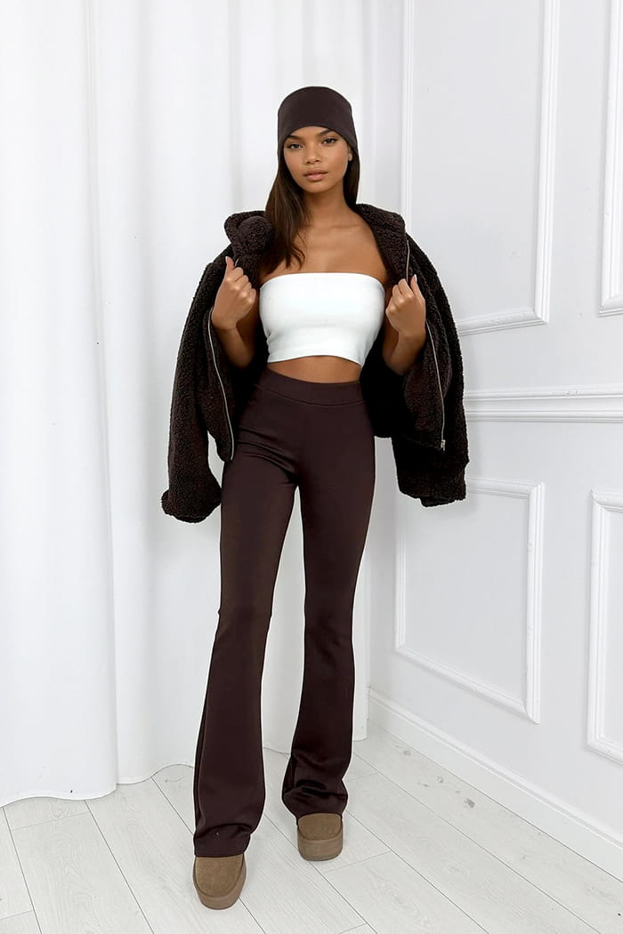 Czekoladowe modelujące spodnie flare Dream Fit Long