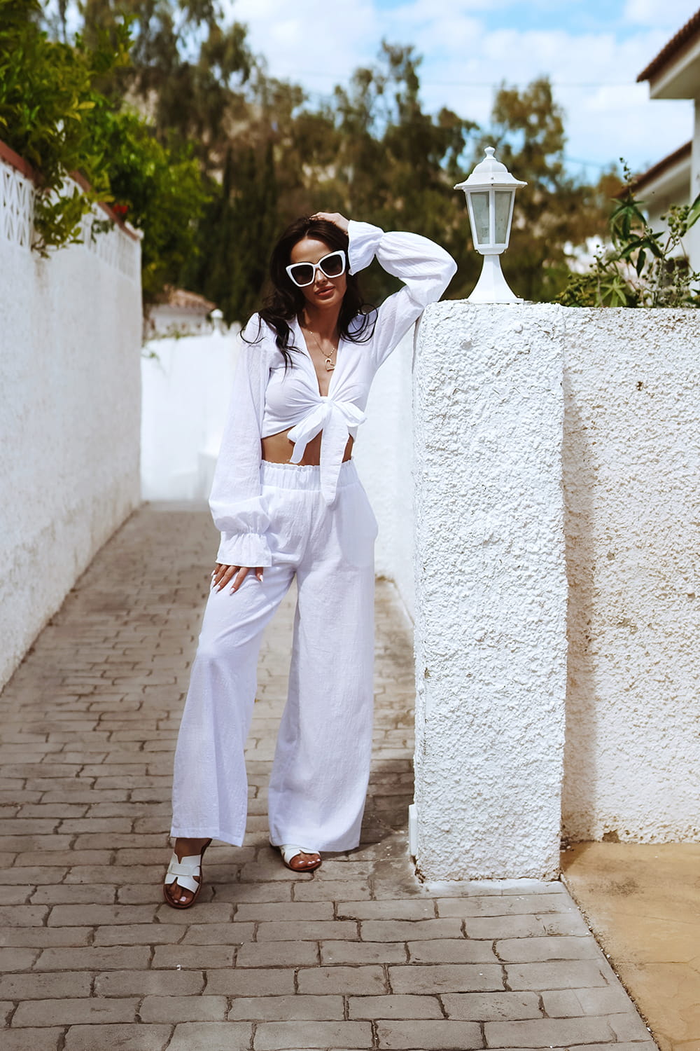 Odkryj letni komfort w naszym zestawie! Długie spodnie z luźną, szeroką nogawką zapewniającą wygodę w upały oraz bluzka z długimi rękawami, wiązana w pasie. Wykonane z idealnego materiału na lato. Nasz zestaw zapewni Ci maksymalny komfort nawet w najgorętsze dni!