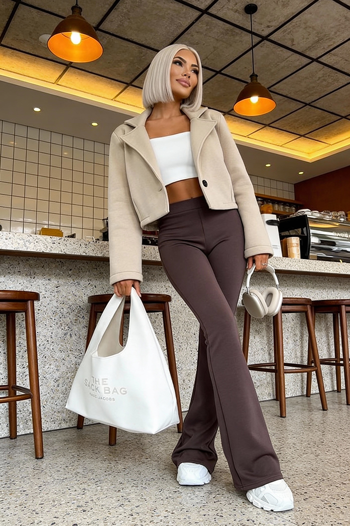 Spodnie wykonane z wyjątkowo miękkiej, wiskozowej dzianiny premium. Krój spodni przepięknie modeluje sylwetkę - rozszerzane nogawki pięknie wydłużają nogi, a elastyczny materiał dopasowuje się do każdej figury, podkreślając kobiece kształty.